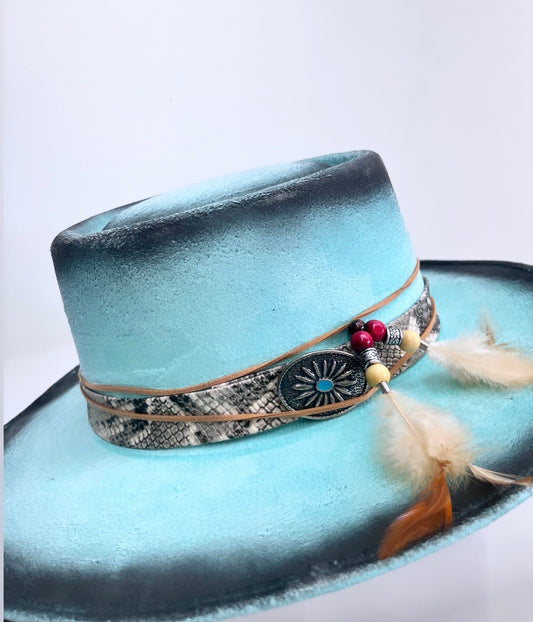 Women's Turquoise with Aztec Ribbon and Concho Western Hat