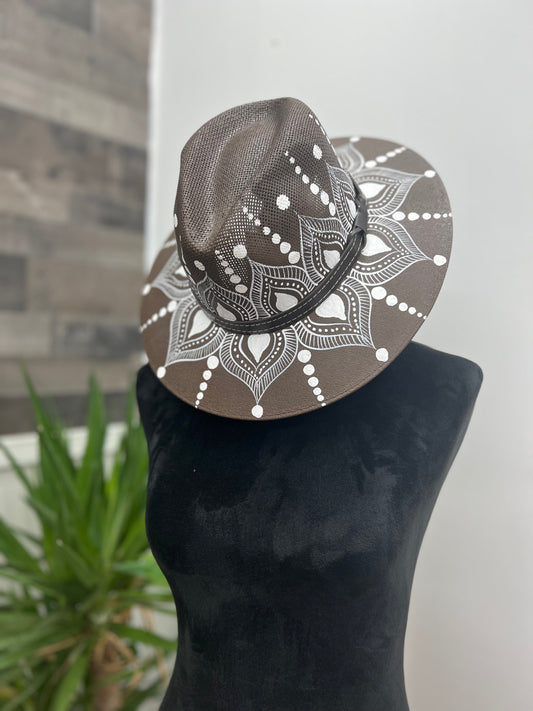 Brown Artisan Hand Painted Hats With Designs