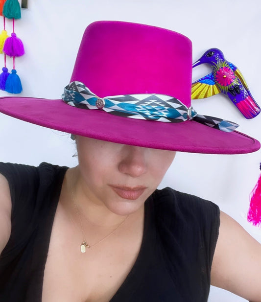 Women's Magenta with Aztec Ribbon Western Hat